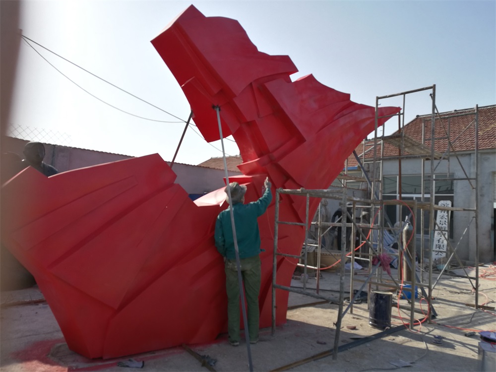 雕塑說明:紅旗雕塑采用不銹鋼鍛造工藝做型,高4米,長8米。人物群雕共10個人物,采用玻璃鋼工藝制作。