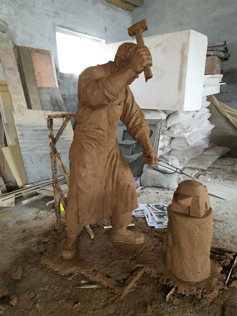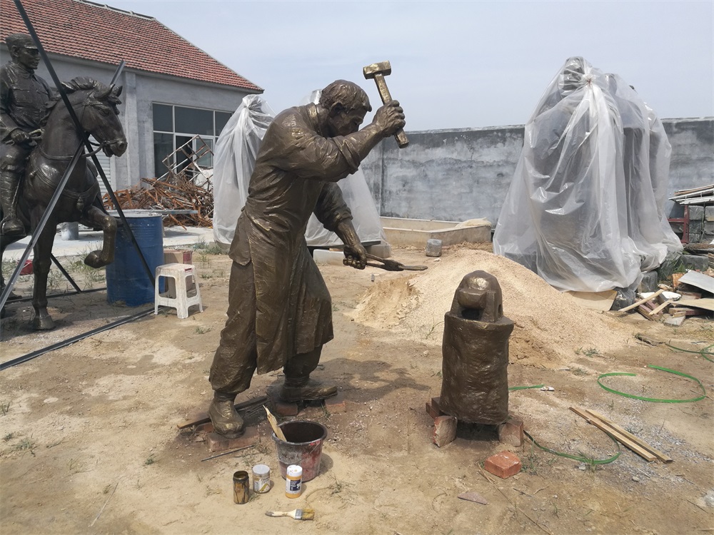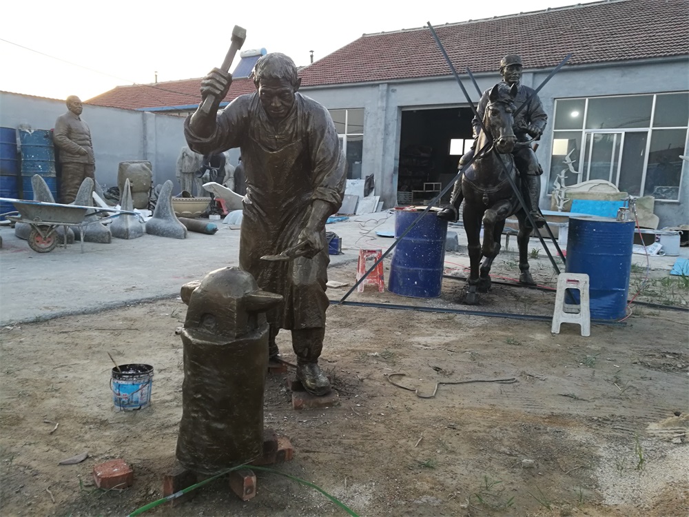雕塑說明:騎馬將軍雕塑高2.6米,成品為玻璃鋼工藝制作。該組雕塑是雕塑公司拋開市場(chǎng)環(huán)境,真正藝術(shù)化創(chuàng)作的珍貴作品。打鐵匠雕塑,高1.9米,同樣采用玻璃鋼工藝制作。兩組雕塑的泥塑均有雕塑師張凱完成。未經(jīng)允許,嚴(yán)禁把本相冊(cè)圖片用于商業(yè)用途。