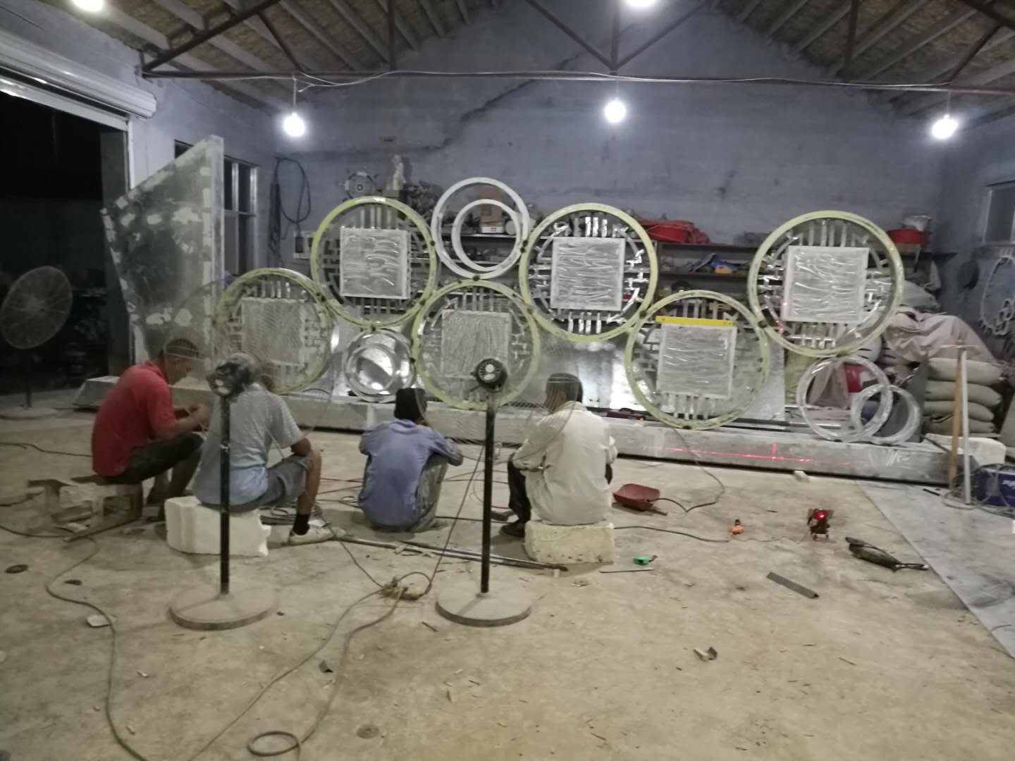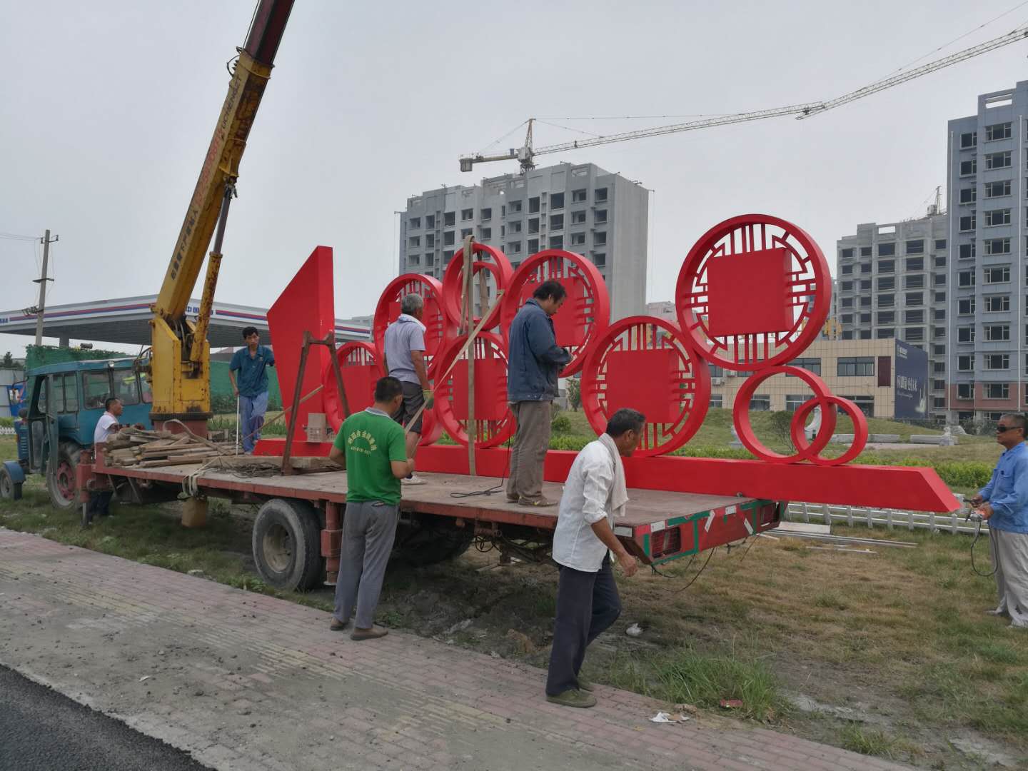 2、工藝:激光切割下料,手工焊接成型。鏤空花格前后雙面并封側(cè)板。本雕塑由濱州市東辦事處、濱州惠眾財金集團(tuán)交付我公司施工。