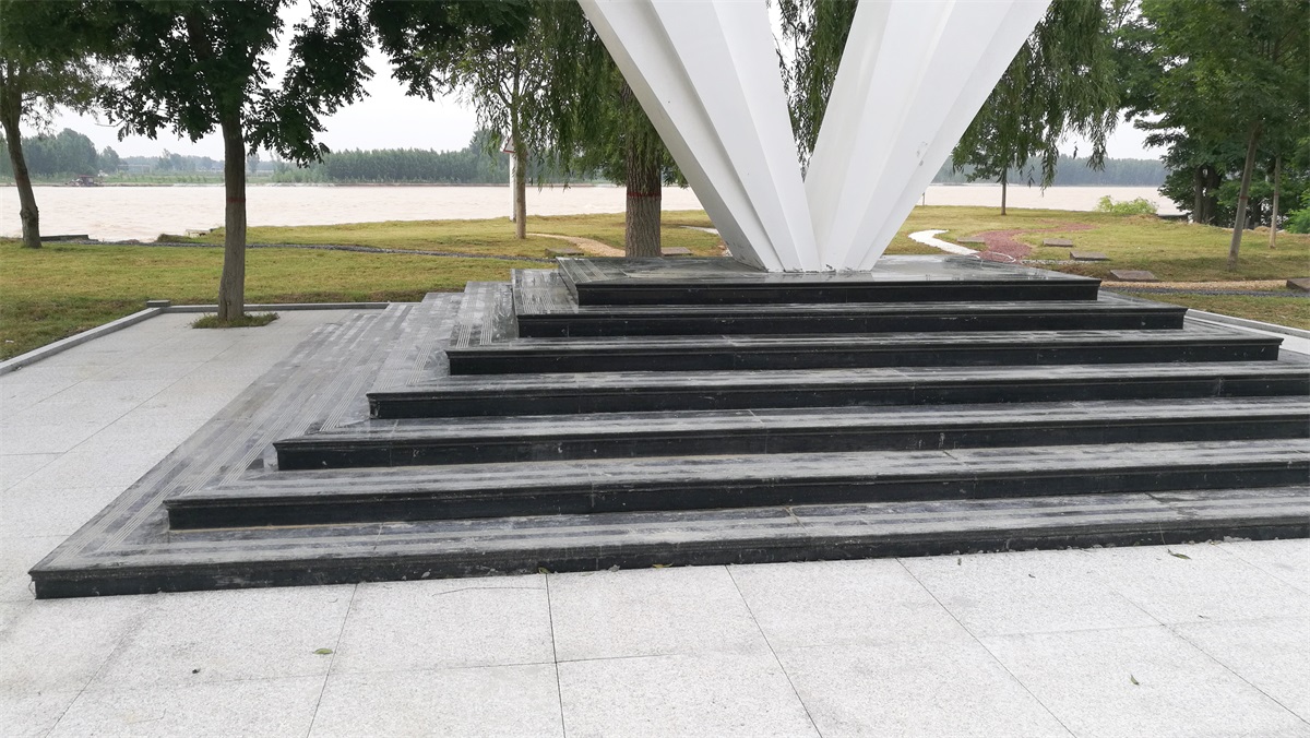 雕塑主體寬度6000毫米,含義為黃河三角洲面積約6000平方千米;七步臺(tái)階象征著七次改道;底座尺寸為寬5400毫米,寓意黃河長(zhǎng)度5464公里;總體高度為7524毫米,寓意黃河流域面積約75.24萬(wàn)平方公里。