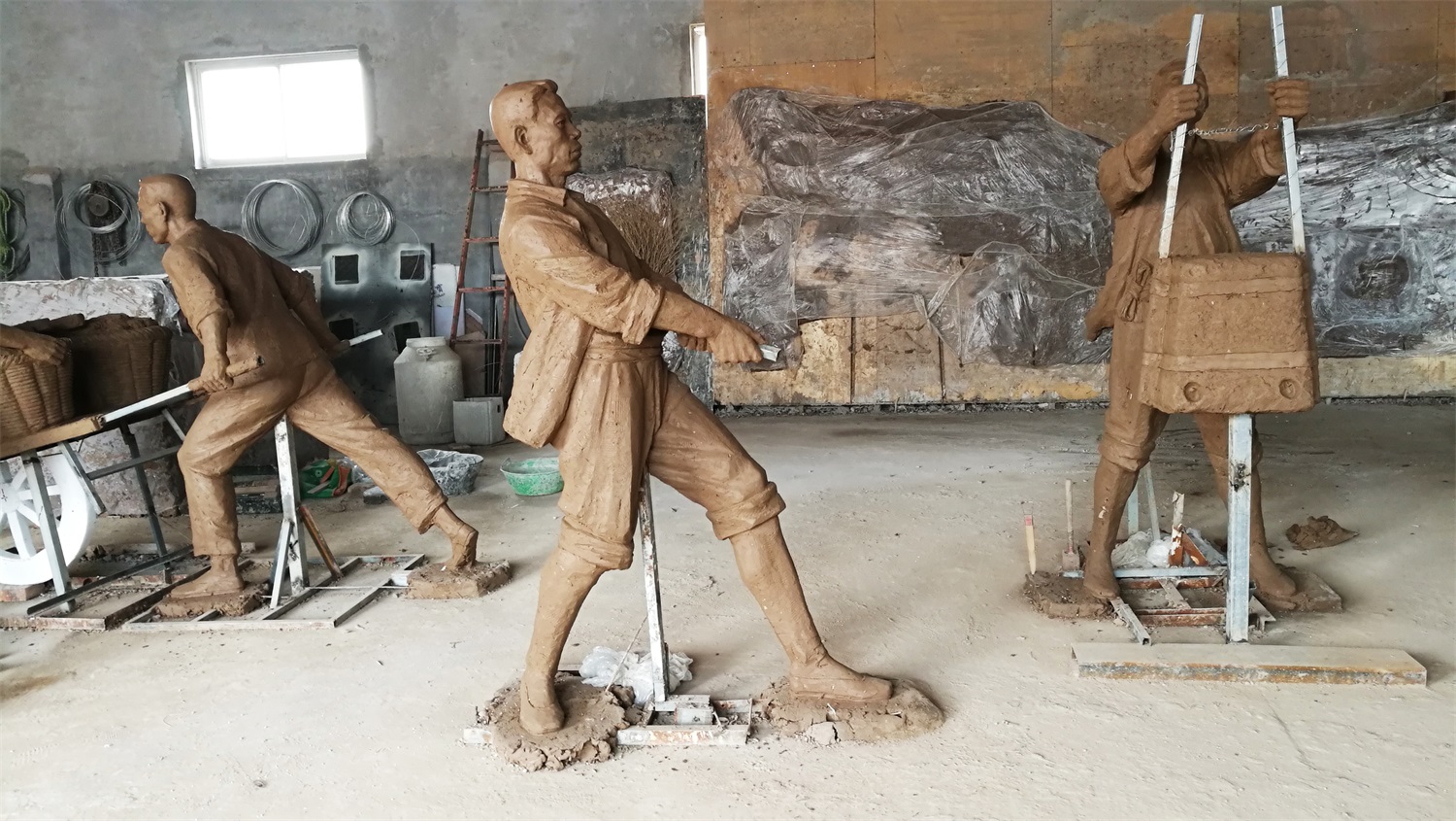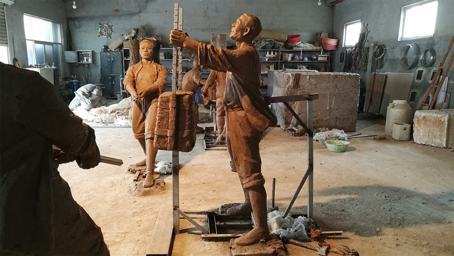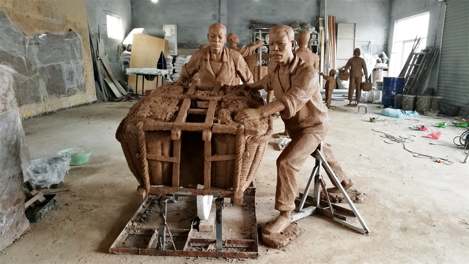 簡介:選取修建堤壩中人們熟悉的具有時代印記的幾個小場景,再現(xiàn)前輩治理黃河的場景,老輩人有共鳴感,對年輕人有實際的教育和激勵。展現(xiàn)黃河人奮斗歷史繼承黃河精神。泥塑于5月23日完成。
