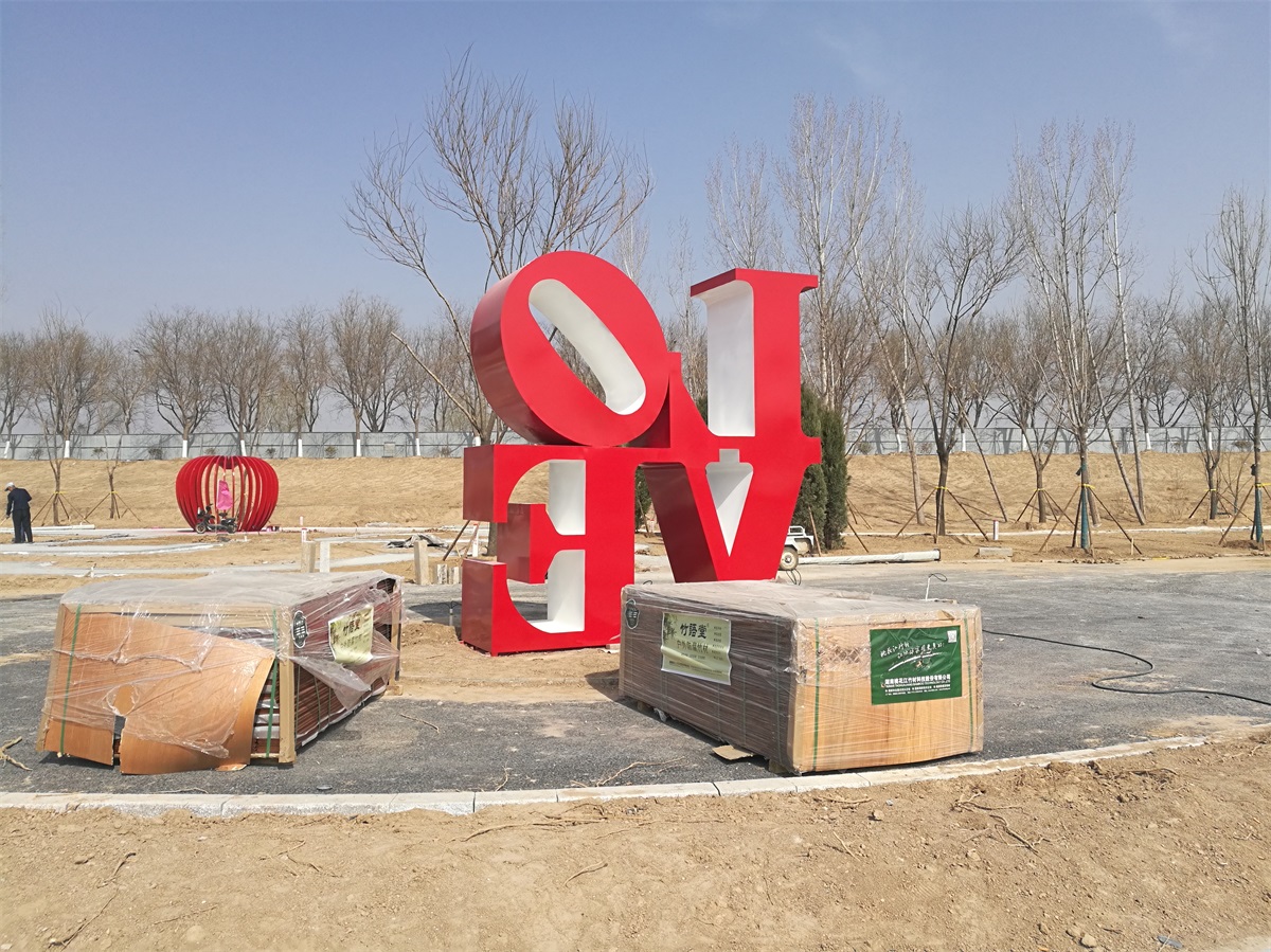 說(shuō)明:love雕塑高3米,鳥(niǎo)籠雕塑高3.3,金屬材質(zhì)。