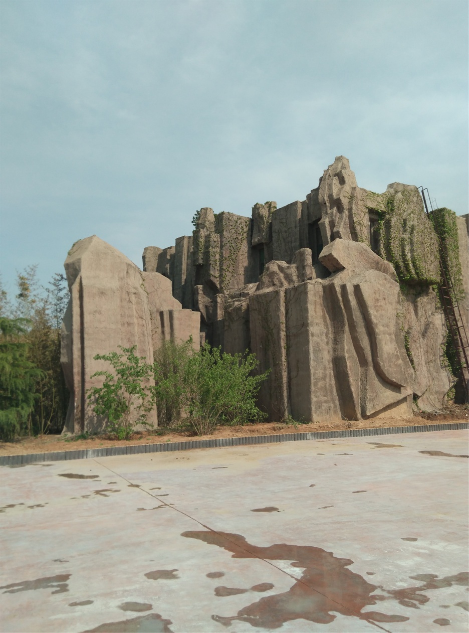 2010年,濟(jì)南章丘植物園入口假山。水泥塑形,表面著色做效果。